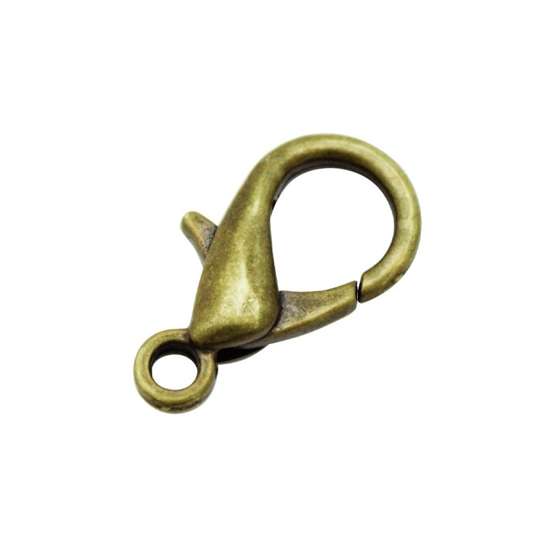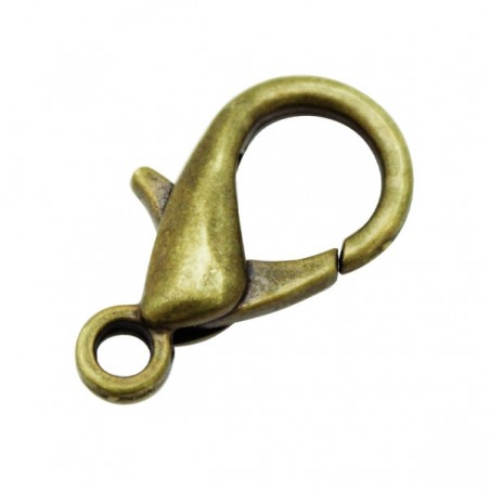 - Mosquetón de latón en color oro viejo. - El tamaño es de 23 milímetros y el taladro es de aproximadamente 2 milímetros. - El precio es por bolsa y la bolsa contiene 2 unidades.
