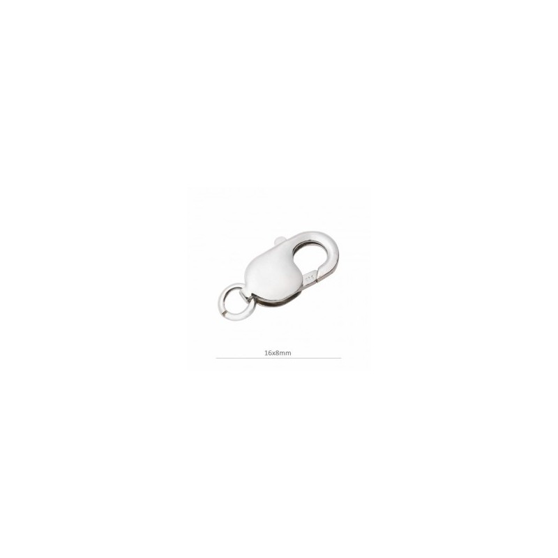 Mosquetón nº 4 con anilla, en plata de ley. La bolsa contiene 1 unidad y el tamaño es de 16x8 mm.