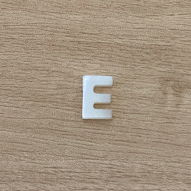 Colgante letra de Nacar inicial E. Largo 10mm.