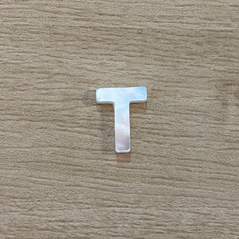 Colgante Letra de nacar gruesito con agujero pasante en la zona de arriba de 0,8mm.