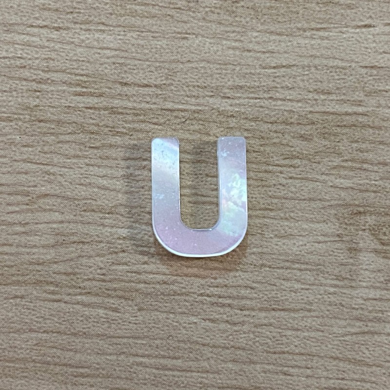Colgante letra de Nacar inicial U. Largo 10mm.