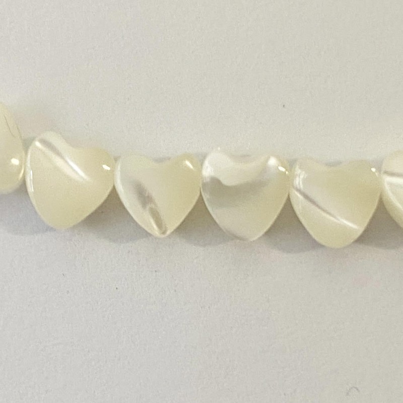Entrepieza con forma de corazón de nácar con agujero pasado en el medio.