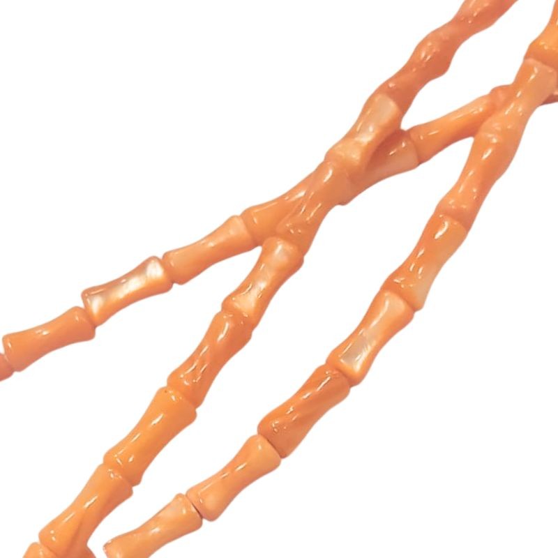 Entrepieza con forma de hueso de nácar en color naranja con agujero pasado en el medio.