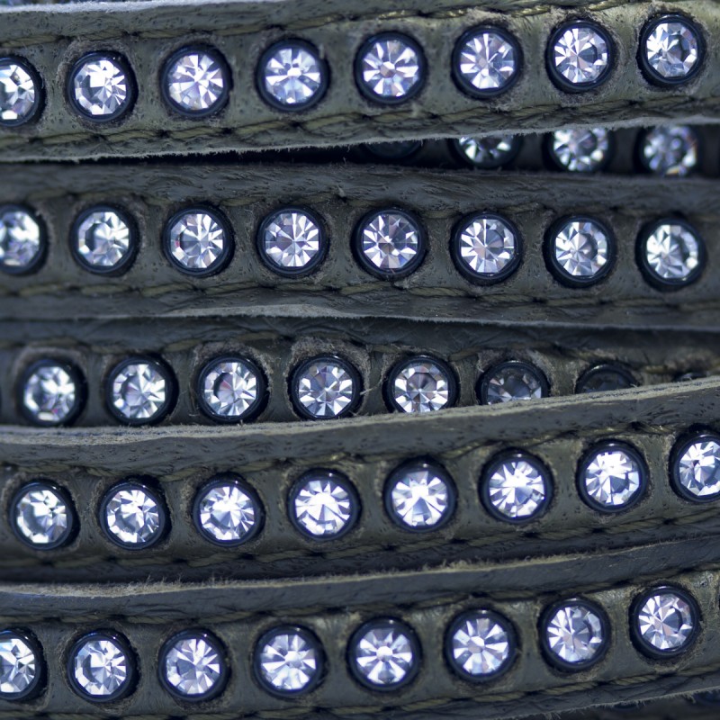 Cuero con Swarovski 6mm. Loden