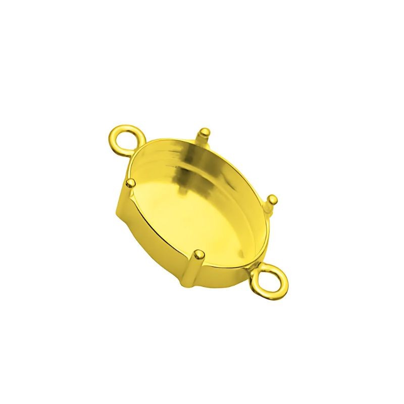 Bisel entrepieza oval para cristal Swarovski 14x10mm. Plata baño oro.