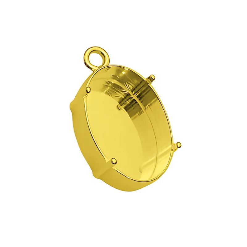 Bisel colgante oval para cristal Swarovski 18x13mm. Plata baño oro.
