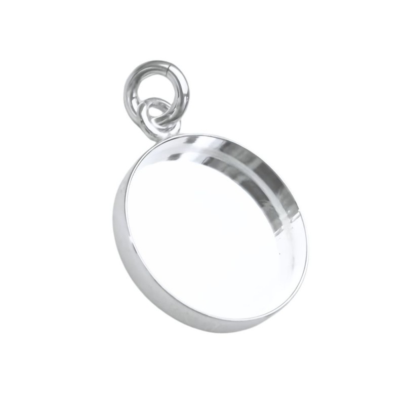 Bisel colgante de 14mm con anilla en plata de ley 925.