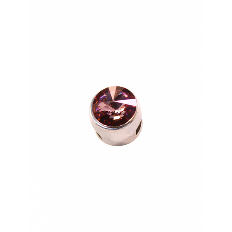 Entrepieza redonda con simil de swarovski color Blus Rose.