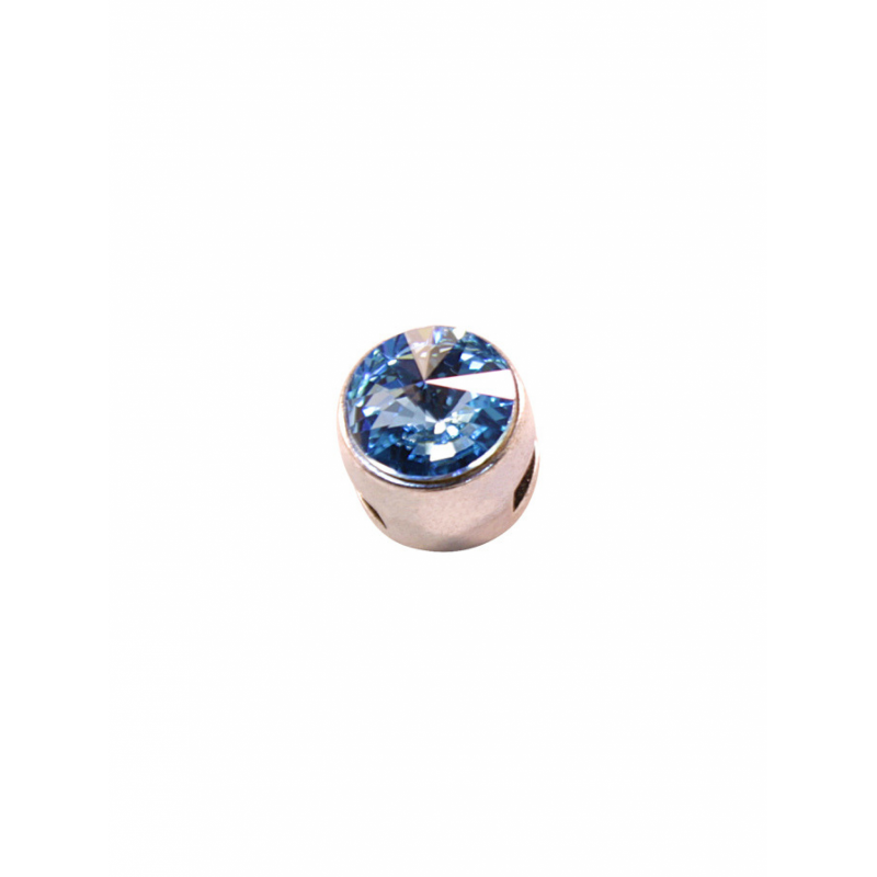 Entrepieza redonda con simil de swarovski color Aquamarine