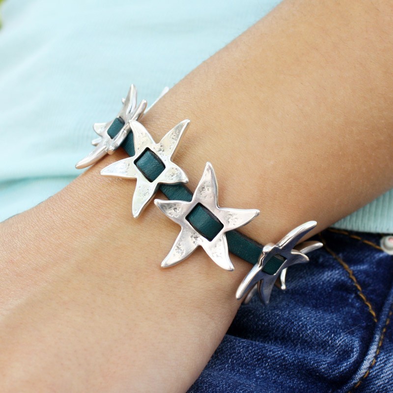 Entrepieza pase 5 mm estrella de mar de 24x24 mm. Baño plata