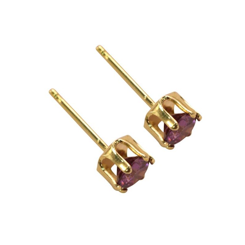 - Pendiente bañado en oro circonita amethyst 5mm - El precio es por bolsa.