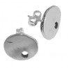 Pendiente disco con taladro en zamak con baño de plata. La bolsa contiene 1 par de pendientes con sus presiones. El diámetro es de 13 mm. y tiene un taladro de 2 mm.