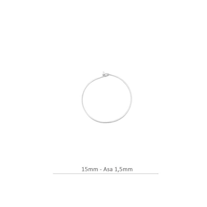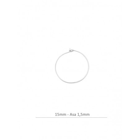 - Pendientes de aro en plata de ley. - Fornituras pendientes aro 15mm - Asa 1,5mm. - El precio es por bolsa y la bolsa contiene 2 unidades.