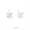- Pendiente mini flor de lis en plata de ley. - Su tamaño es de 6,5 mm - El precio es por bolsa y la bolsa contiene 2 unidades con 2 presiones.
