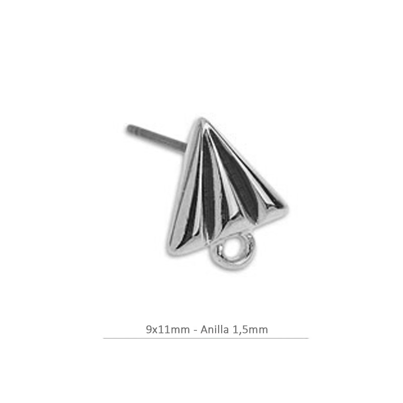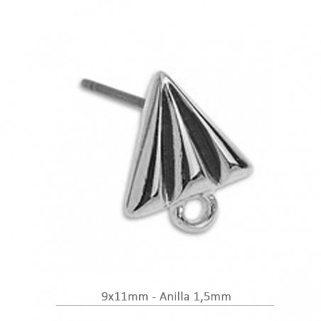 Pendientes flecha de 9x11mm con anilla. Zamak bañado en plata. La bolsa contiene 2 unidades y 2 presiones.