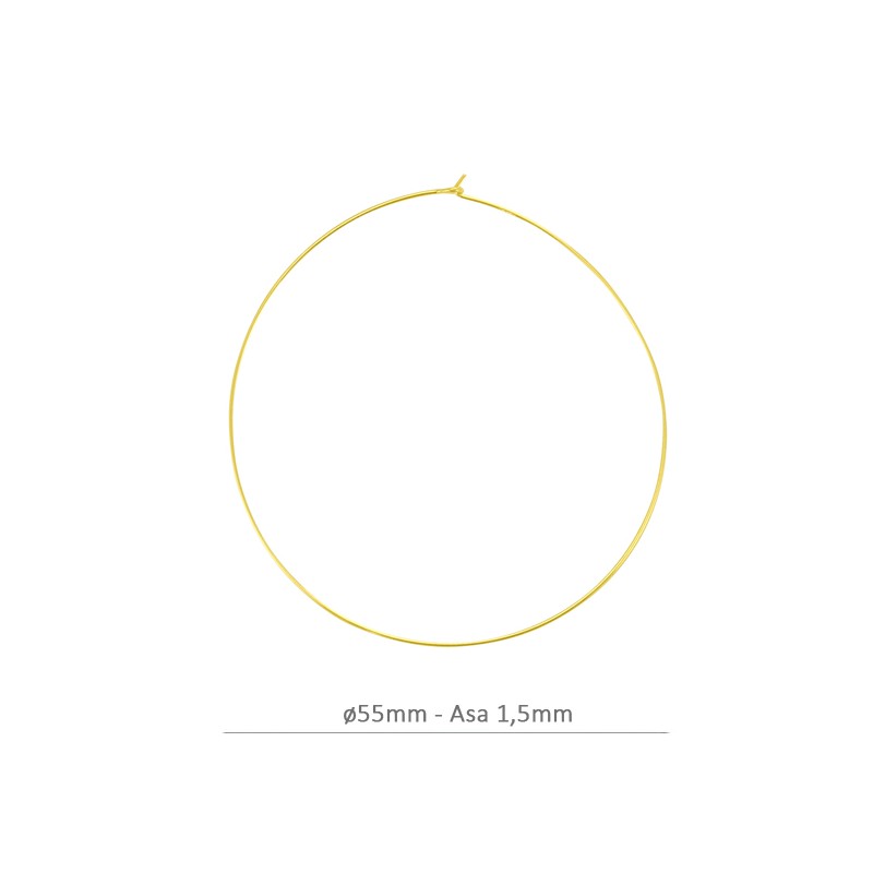 Fornitura para pendiente, de plata con baño de oro. La bolsa contiene 2 unidades. El tamaño es de 55mm - Asa 1,5mm.