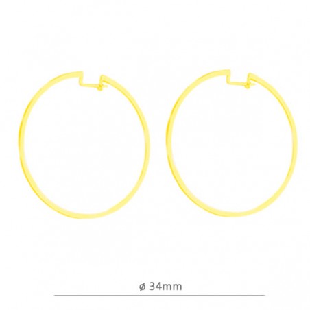 Pendientes de aro en plata de ley con baño de oro. La bolsa contiene 2 unidades. El diámetro es de 34,5mm y el hilo es de 1,5mm.