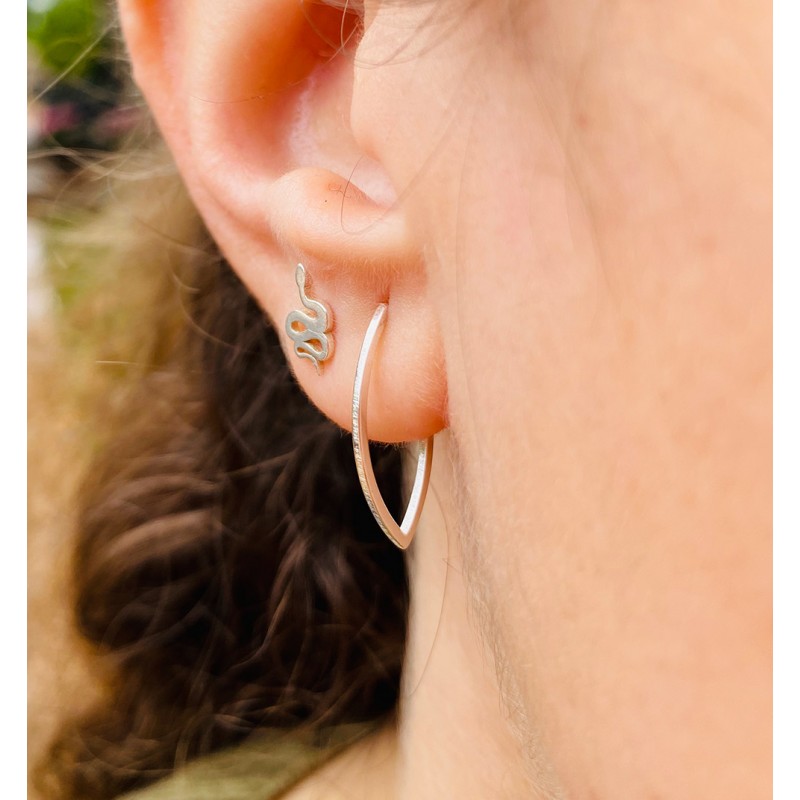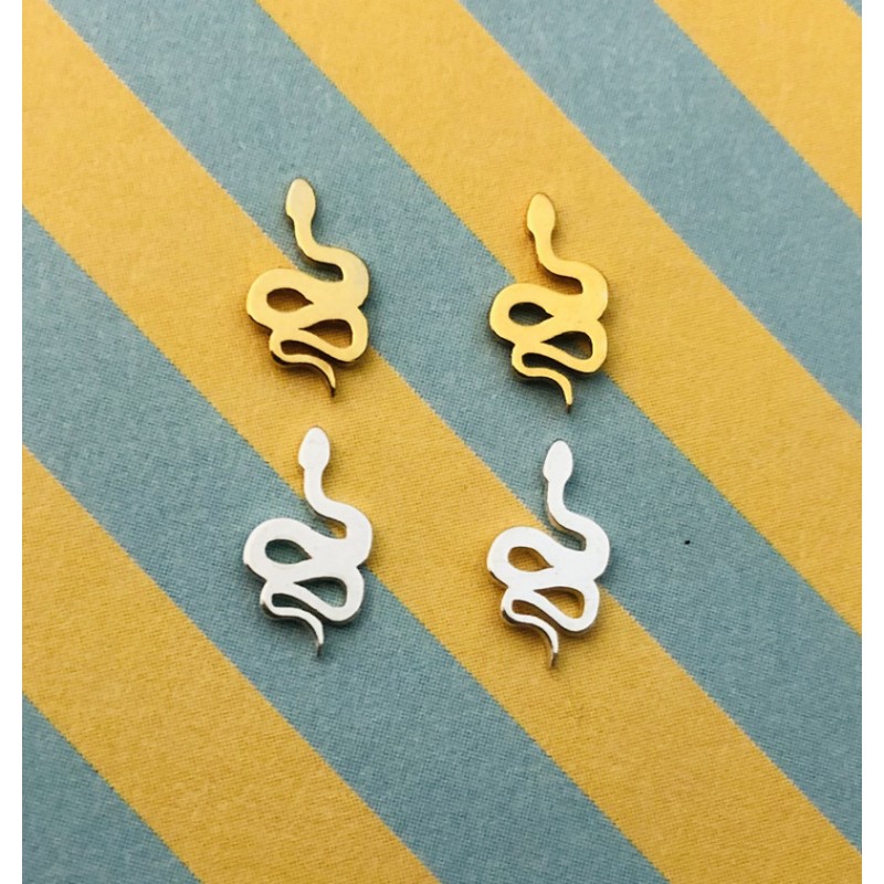 - Pendiente mini serpientes en plata de ley. - Su tamaño es de 6mm. - El precio es por bolsa y la bolsa contiene 2 unidades con 2 presiones.