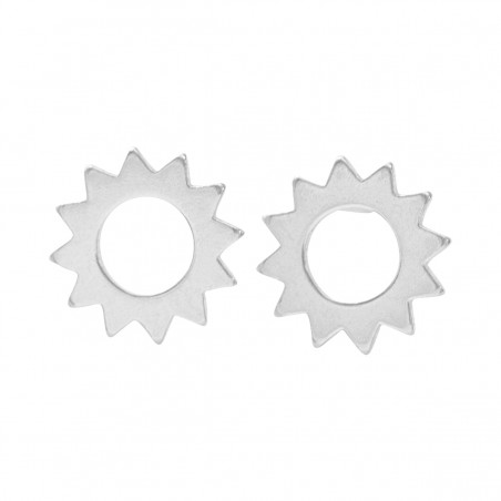 - Pendiente Sol plata de ley. - Su tamaño es de 8mm. - El precio es por bolsa y la bolsa contiene 2 unidades con 2 presiones.