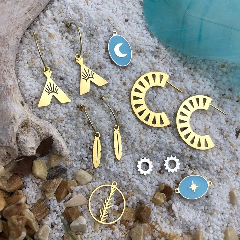 Bolsa de 2 uds, incluye presiones.Pendientes criollas octógono de 19mm baño oro
