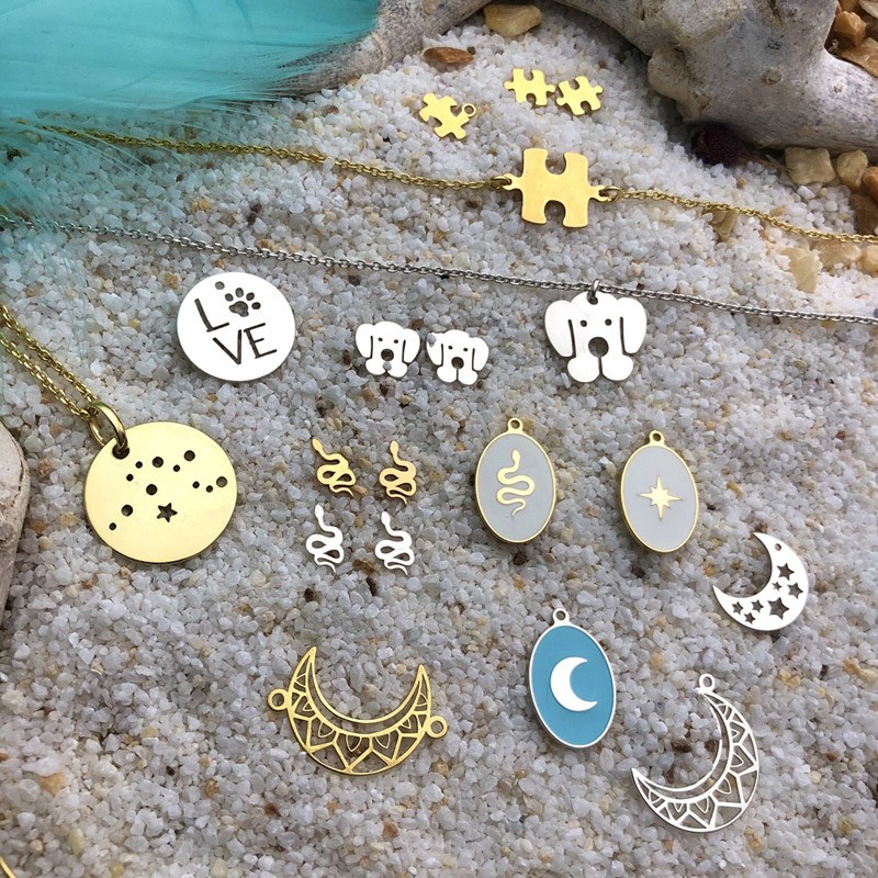 - Pendientes perrito en plata baño oro - La bolsa contiene 2 unidades y 2 presiones.