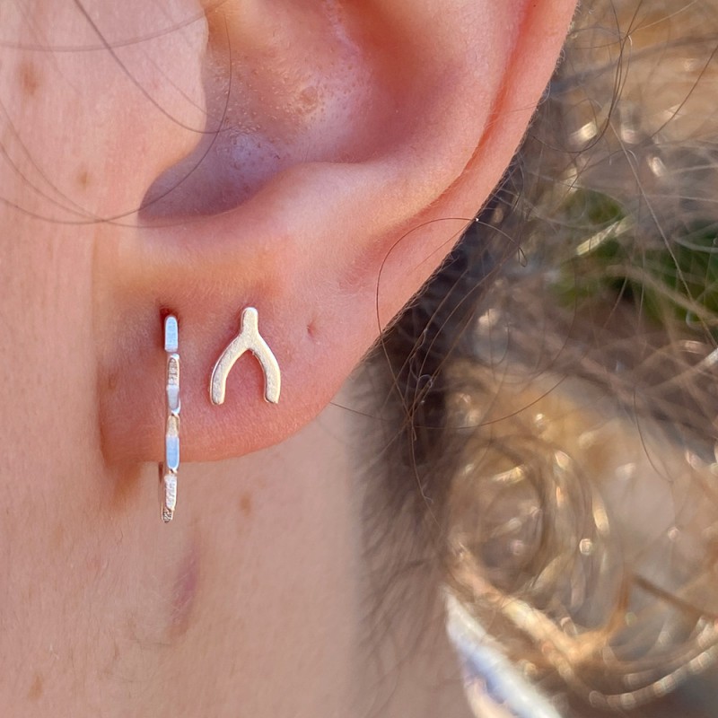 Pendientes mini wishbone de la suerte en plata de ley 925, fabricada en España.