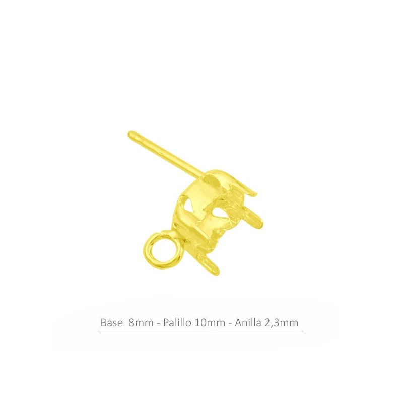 Pareja de pendientes en plata de ley 925, bañado en oro de 18k en forma de garra cuadrada para cono de 8 mm con asa para cristales de Swarovski. Son muy sencillos a la hora de elaborar. Al tener el asa podrás seguir construyendo tu diseño.