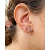 Este pendiente criolla con flor y mini colgantito de circonitas lilas de 11,5 mm puedes llevarlo como aro sencillo, tanto en el primer agujero como en en el agujero secundario.