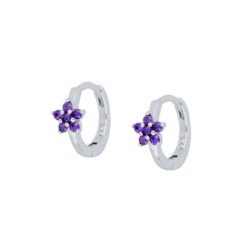 Criolla flor 4 puntas circonitas lila 11,5 mm. Plata de ley