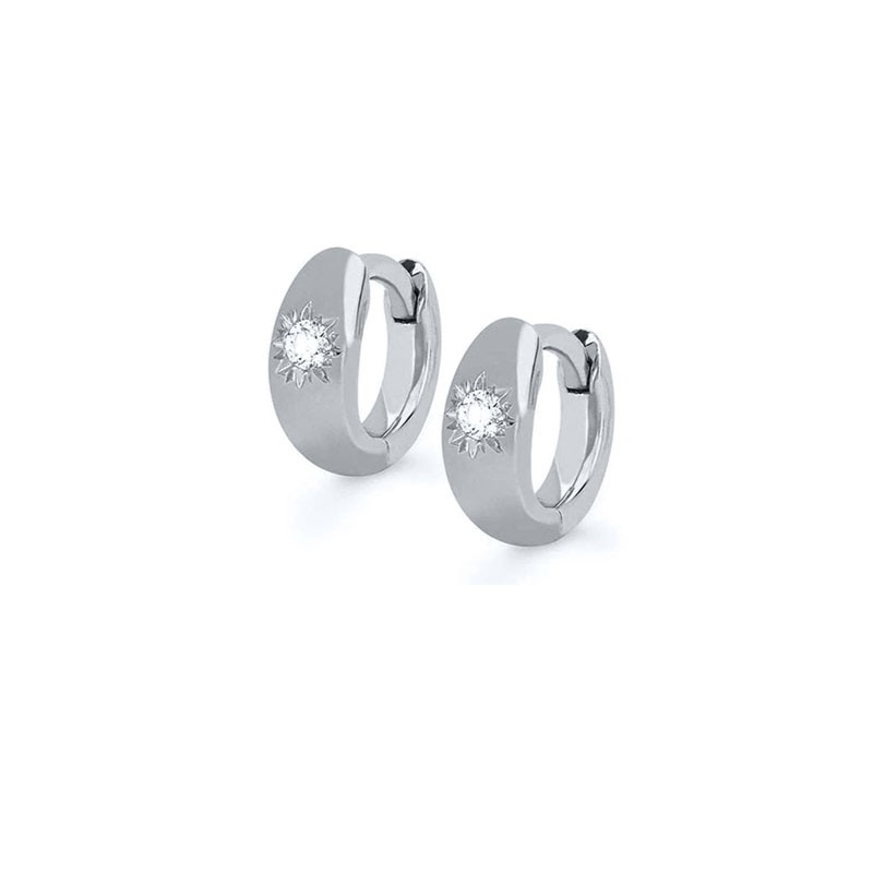 Pendientes criollas automáticas cosmo con circonita blanca en plata de ley 925.