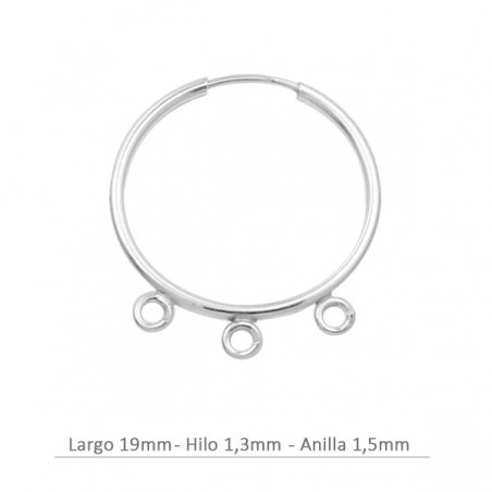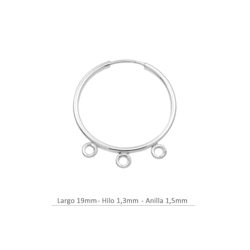 Pendiente criolla nº3 con 3 anillas, en plata de ley. La bolsa contiene 2 unidades y el diámetro interior es de 15,5 mm.