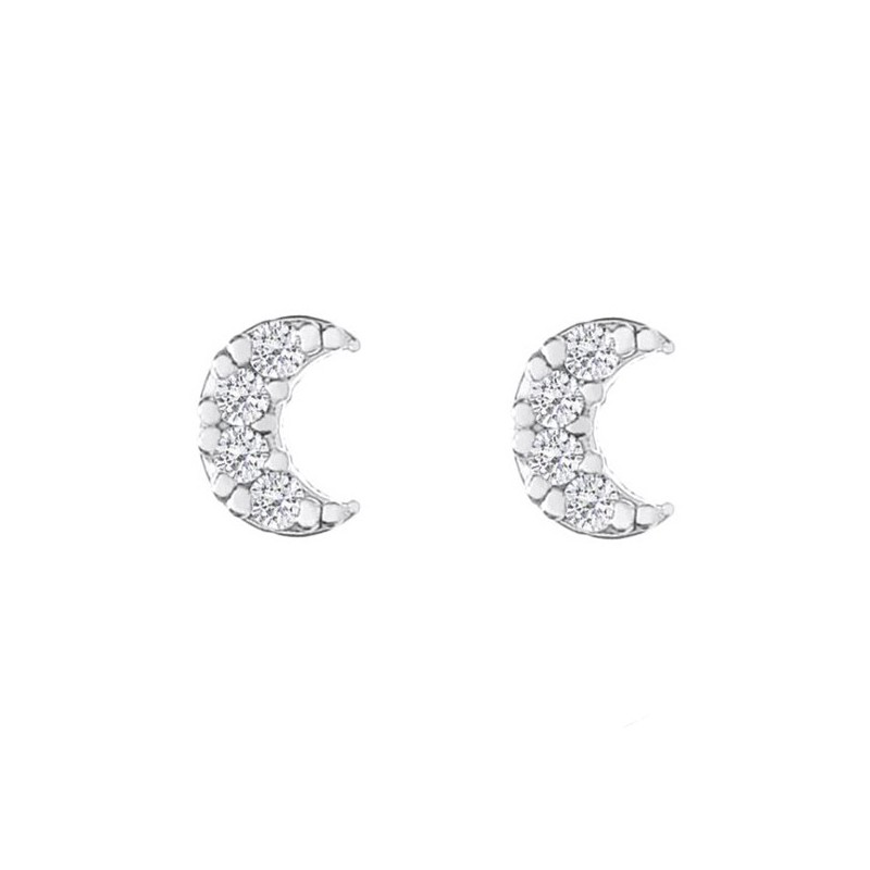 Pendiente luna 6,5 mm con circonitas blancas en plata.