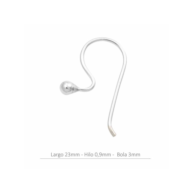 Gancho para crear pendientes con tope bola en plata de ley 925 fabricado en España de tamaño grande.