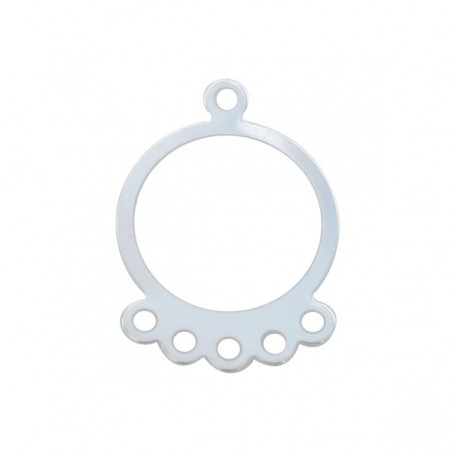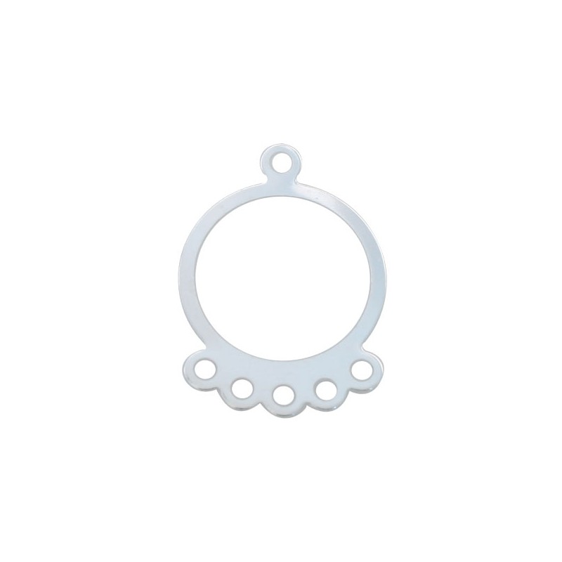 Entrepieza aro con 5 anillas de latón en color plateado. La bolsa contiene 4 unidades. El tamaño es de 22x15 mm. y las anilla son de 2 mm.
