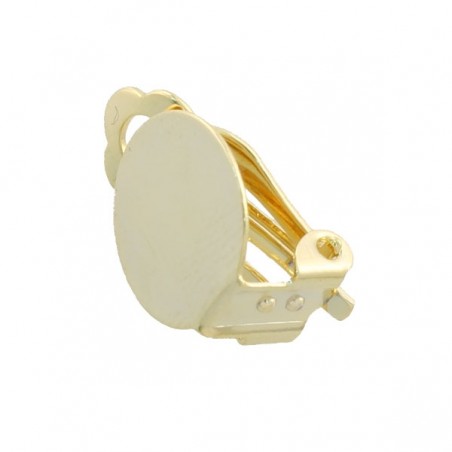Pendiente clip con disco de latón en color dorado. La bolsa contiene 2 unidades y el disco es de 12 mm.