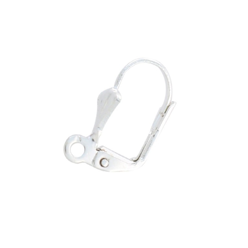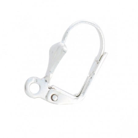 Pendiente ballesta con anilla de latón en color plateado. La bolsa contiene 4 unidades. El tamaño es de 15 mm. y la anilla es de 1,5 mm interior.