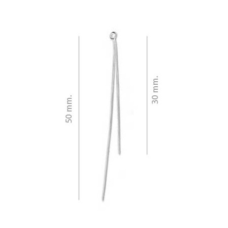 Entrepieza alargador de pendiente de cola ratón en plata de ley. La bolsa contiene 1 unidad y el largo es de 50 y 30 mm.