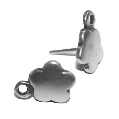 Pendiente margarita con anilla en zamak con baño de plata. La bolsa contiene 1 par de pendientes. El tamaño es de 10x14 mm. y el taladro de la anilla es de 2 mm.