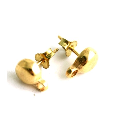 Pendiente media bola con anilla de zamak con baño oro. La bolsa contiene 1 par de pendientes con sus presiones. El tamaño de la bola es de 8 mm. y el taladro de la anilla es de 2 mm.