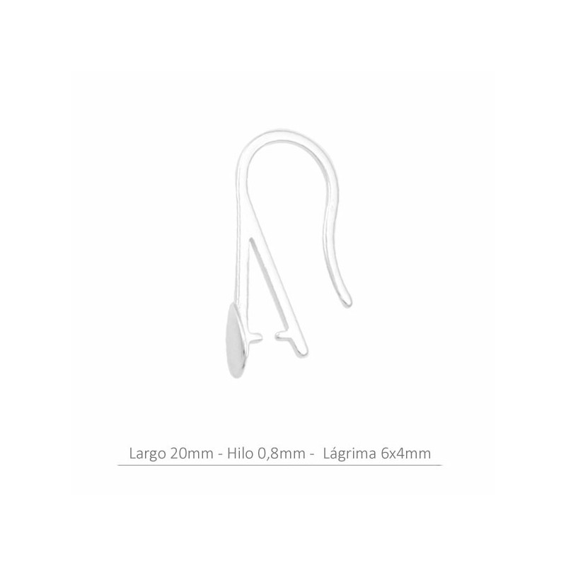 Gancho para crear pendientes recto motivo lágrima con pasador en forma de pinza en plata de ley 925 fabricado en España de tamaño pequeño.