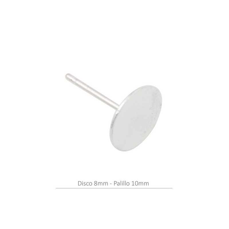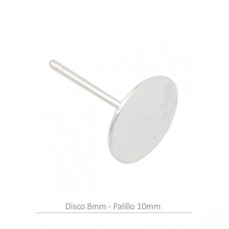 Pendiente disco plano de 8 mm con palillo 10 mm y presión.