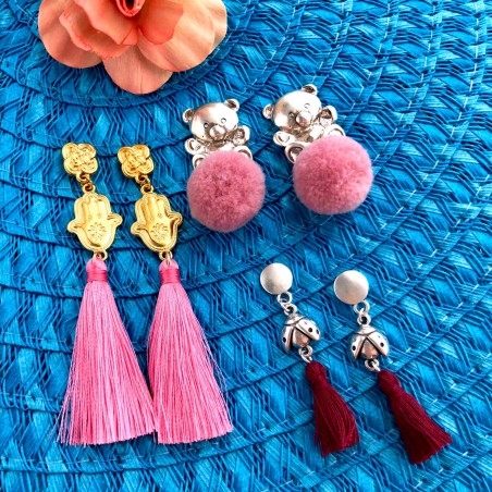 Pendientes ositos con anilla en zamak con baño de plata. La bolsa contiene 1 par de pendientes. Tamaño 25x19 mm. Taladro anilla 2 mm.