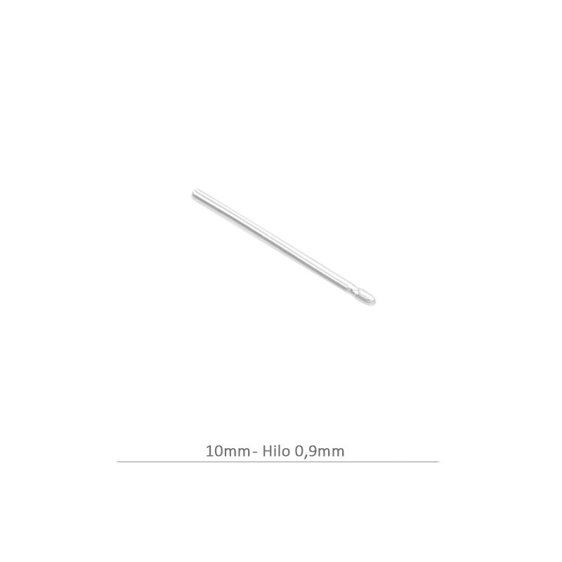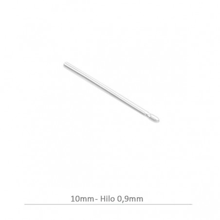 Palillo con rebaje, en plata de ley. La bolsa contiene 10 unidades. El largo es de 10 mm. y el hilo es de 0,9 mm.