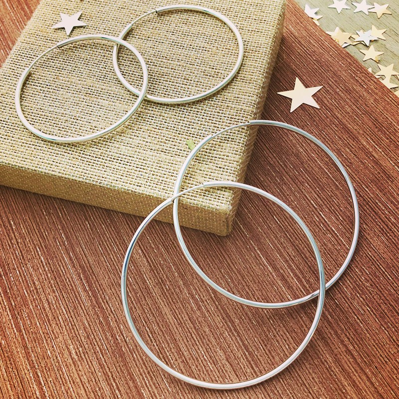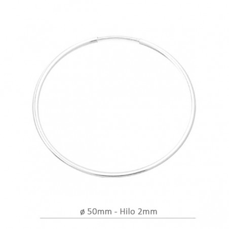 Criolla, en plata de ley. La bolsa contiene 2 unidades. El diámetro es de 50mm y el hilo es de 2mm.