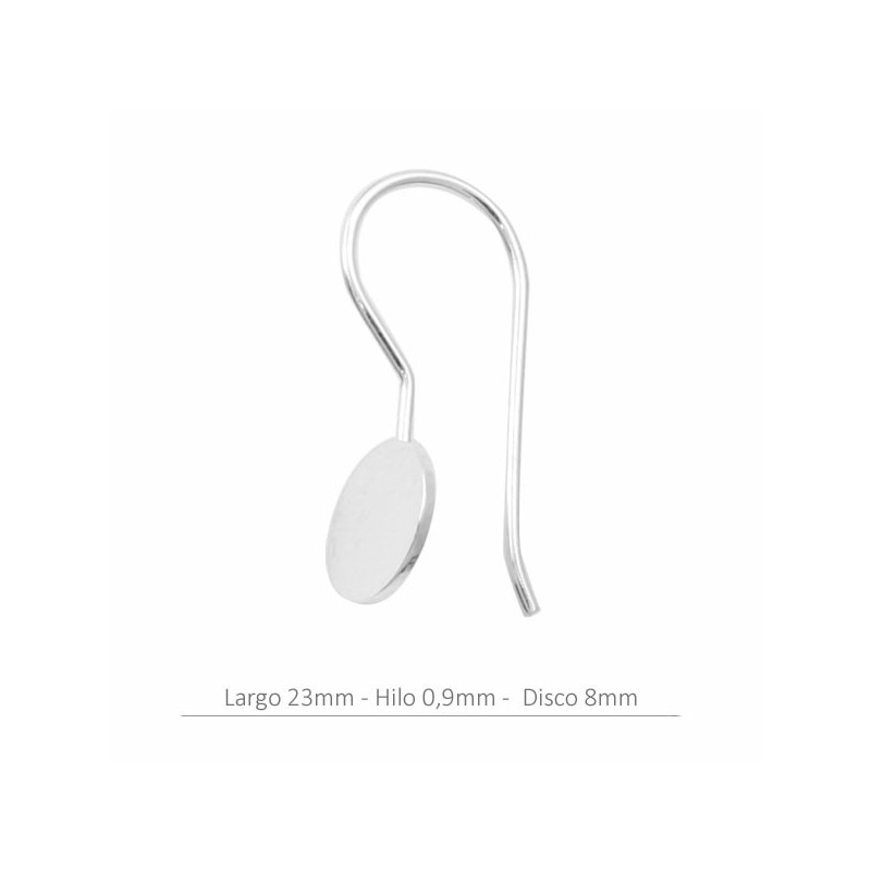 Gancho para crear pendientes con base redonda plana de 8mm en plata de ley 925 fabricado en España.
