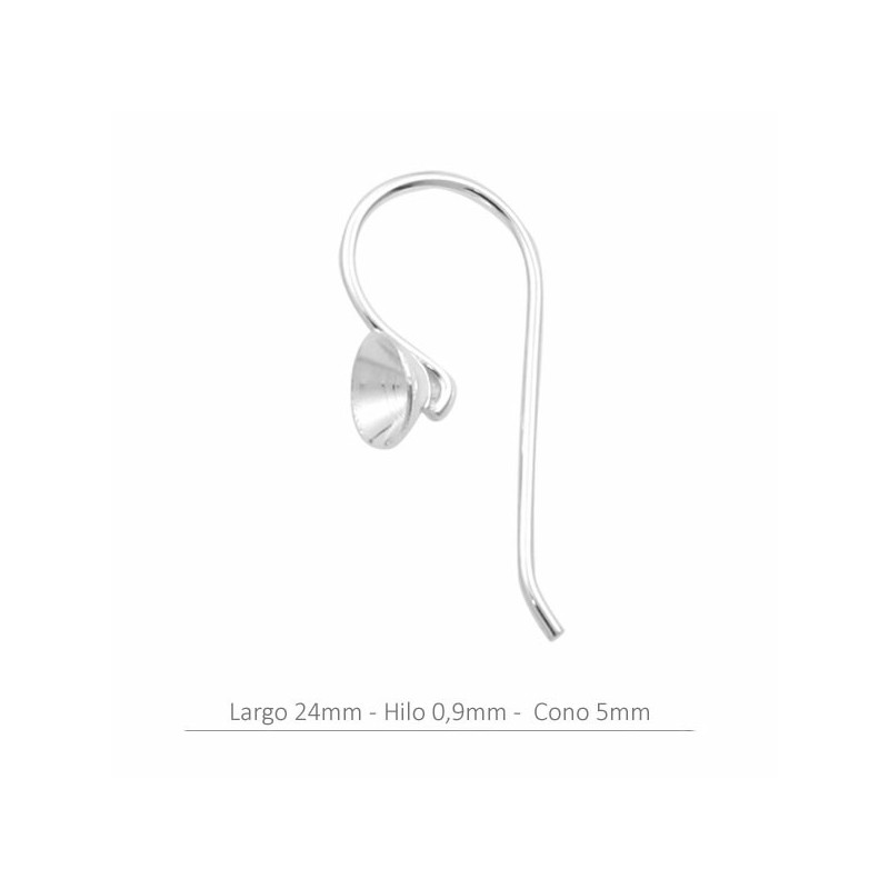 Gancho para crear pendientes con cono de 5mm para pegar cristal de 5mm en plata de ley 925 fabricado en España.