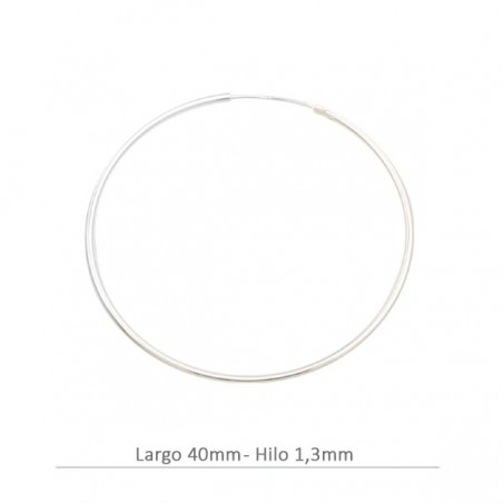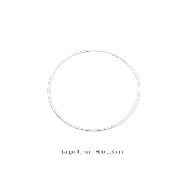 Criolla, en plata de ley. La bolsa contiene 2 unidades. El diámetro es de 40 mm. y el hilo es de 1,30 mm.