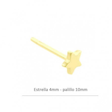 - Pendiente mini estrella en plata baño oro. - Tamaño de 4.5 milímetros y palillo de 10 mm. - La bolsa contiene 2 unidades y 2 presiones.