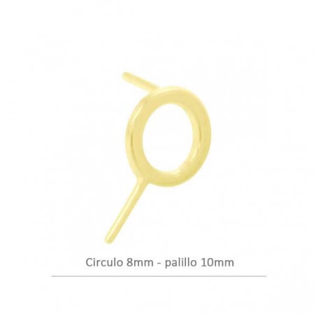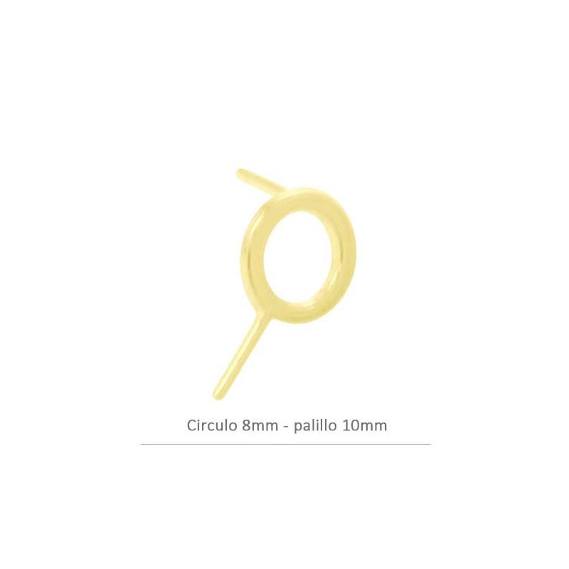 - Pendiente círculo calado en plata baño oro con pasador. - Tamaño de 8 milímetros y palillo de 10 mm. - La bolsa contiene 2 unidades y 2 presiones.