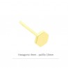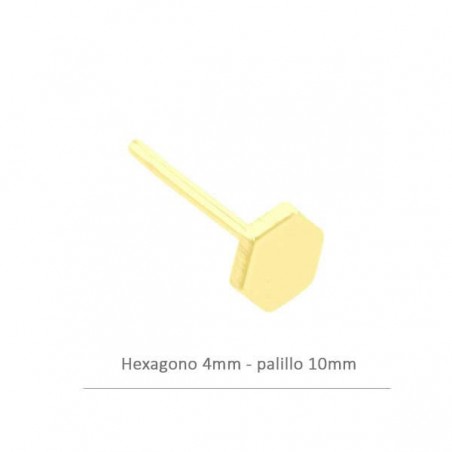 - Pendiente mini hexágono en plata baño oro. - Tamaño de 4 milímetros y palillo de 10 mm. - La bolsa contiene 2 unidades y 2 presiones.